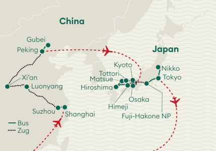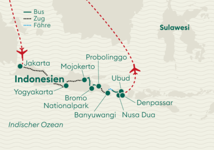 Mit unserem neuartigen Reiseplaner können Sie die Rundreise auch ohne Flug direkt auf unsere Website online buchen. Zusätzlich haben Sie die Möglichkeit,
