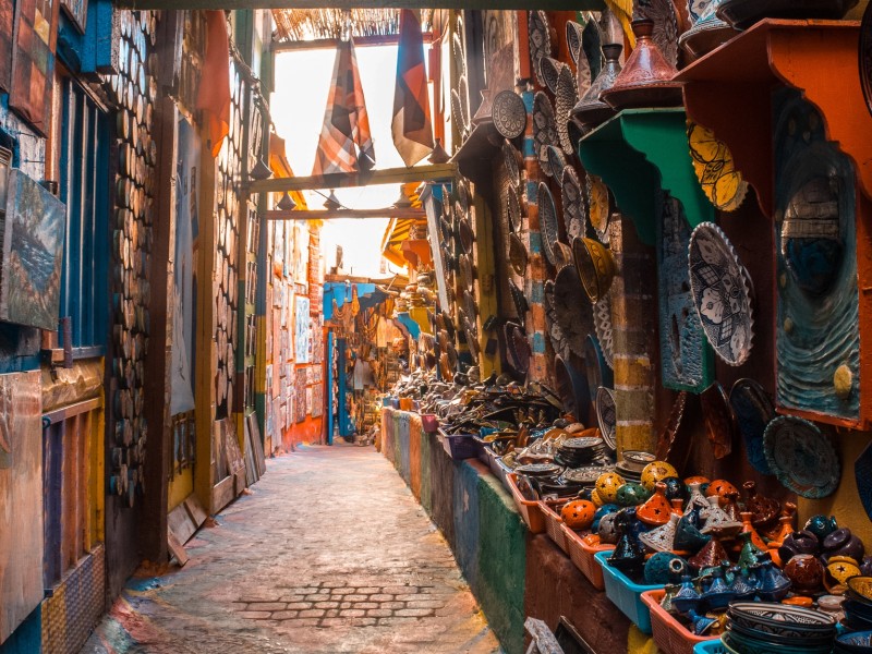Heute Morgen können Sie Ihr kreatives Talent unter Beweis stellen. Unter professioneller Anleitung lernen Sie das traditionelle Töpferhandwerk Marokkos kenne. Sie lernen Schritt für Schritt, wie aus Ton kunstvolle Krüge oder Tajines entstehen. Unter Anleitung eines lokalen Künstlers formen und gestalten Sie Ihr eigenes Werk – jedes Stück ein Unikat.