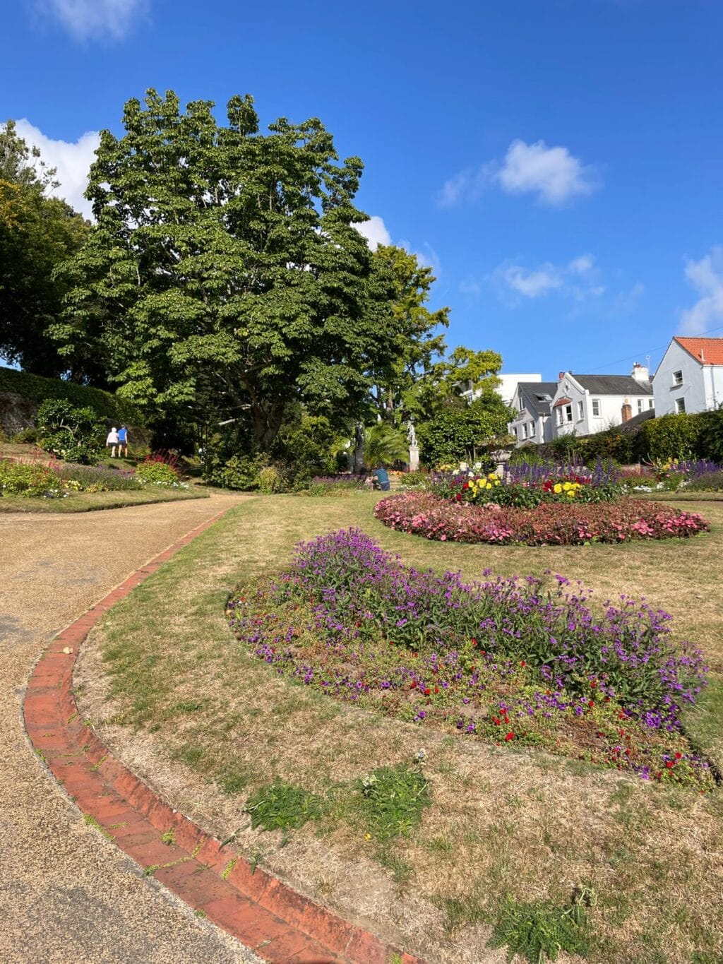 Der erste Tag auf Guernsey startet mit einer Stadtführung durch St. Peter Port. Der idyllische kleine Ort besteht aus engen Strassen und blumenreichen Häuserfassaden. Nebst dem Parlamentsgebäude durchqueren wir auch die Candie Gardens. Der weitläufige viktorianische Garten beheimatet unterschiedliche Pflanzen sowie eine Statue von Königin Viktoria und dem französischen Schriftsteller Victor Hugo. Nach der Mittagspause geht es mit dem Bus weiter auf eine Inselerkundungstour. Einer der vielen Stopps ist bei der mit bunten Tonscherben und Muscheln verzierten «Little Chapel». Nicht nur die Kirche selbst, sondern auch die Umgebung ist mit bunten Bruchstücken versehen. Ein echtes Meisterwerk und ein wahrer Hingucker. Es geht weiter der Küste entlang und wir werden vom Blick aufs Meer stets begleitet. Zum Schluss des Tages gönnen wir uns ein leckeres Eis am Strand.
