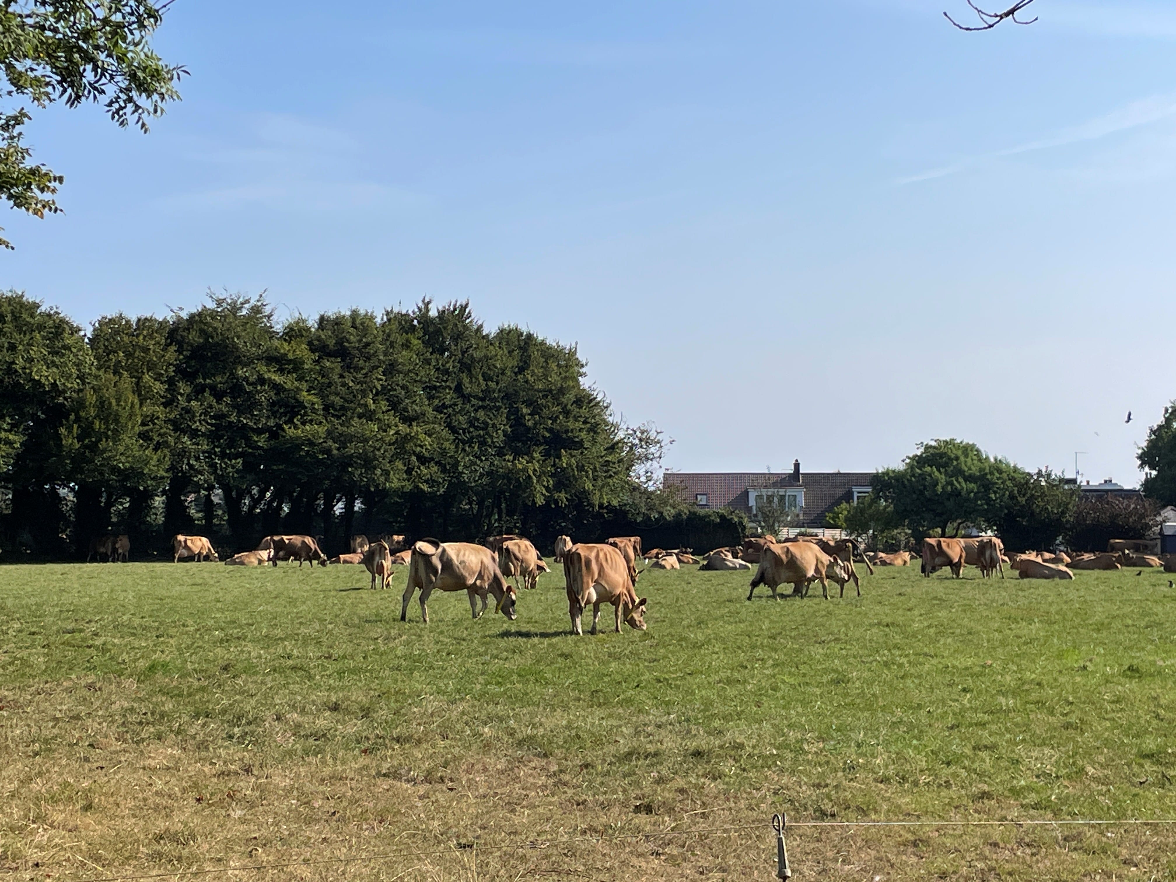 Am nächsten Tag machen wir uns auf den Weg in den Norden und den Osten der Insel. Bevor wir La Hougue Bie erreichen, erblicken wir am Strassenrand plötzlich eine Herde der berühmten Jersey Kühe. Spontan hält unser Fahrer an und wir dürfen uns auf dem nahegelegenen Hof umschauen. Unser Reiseleiter erklärte uns, dass es nur sehr wenige Kuhherden dieser Rasse auf Jersey gibt und es ein glücklicher Zufall ist, dass wir diesen begegnen. In dieser Saison ist es auch für ihn das erste Mal, dass er diese sieht, denn normalerweise bekommt man die Kühe nicht zu Gesicht.