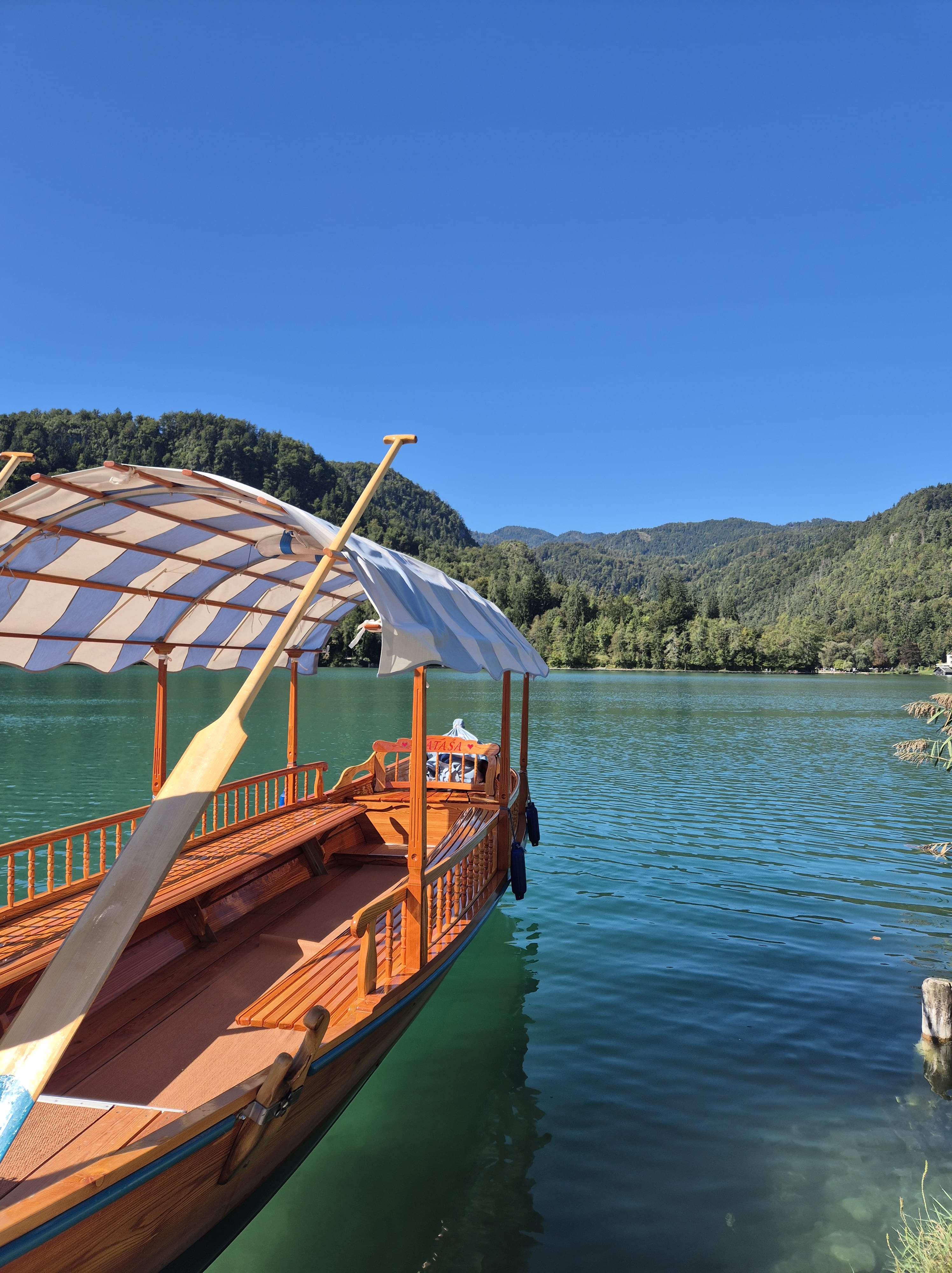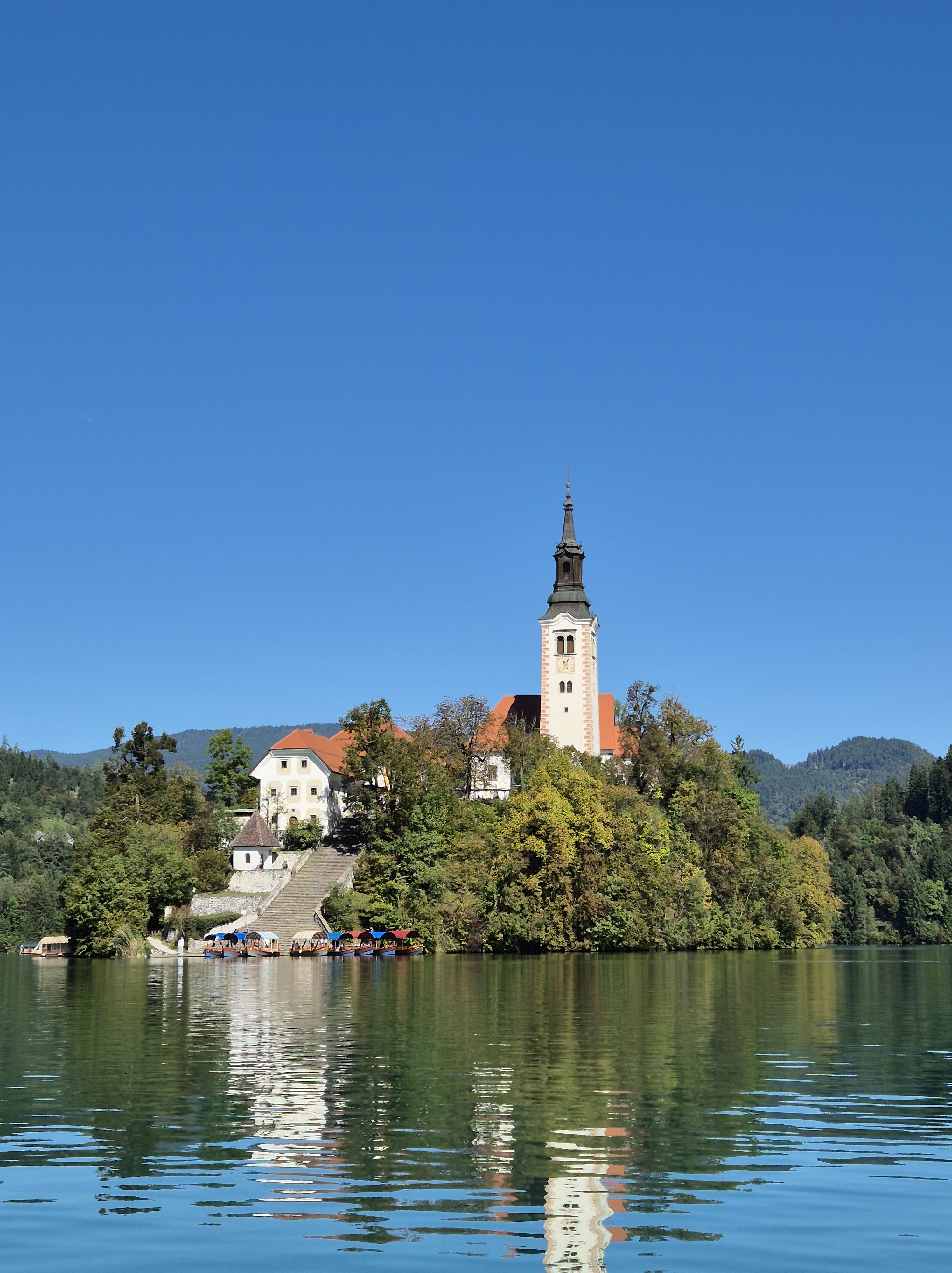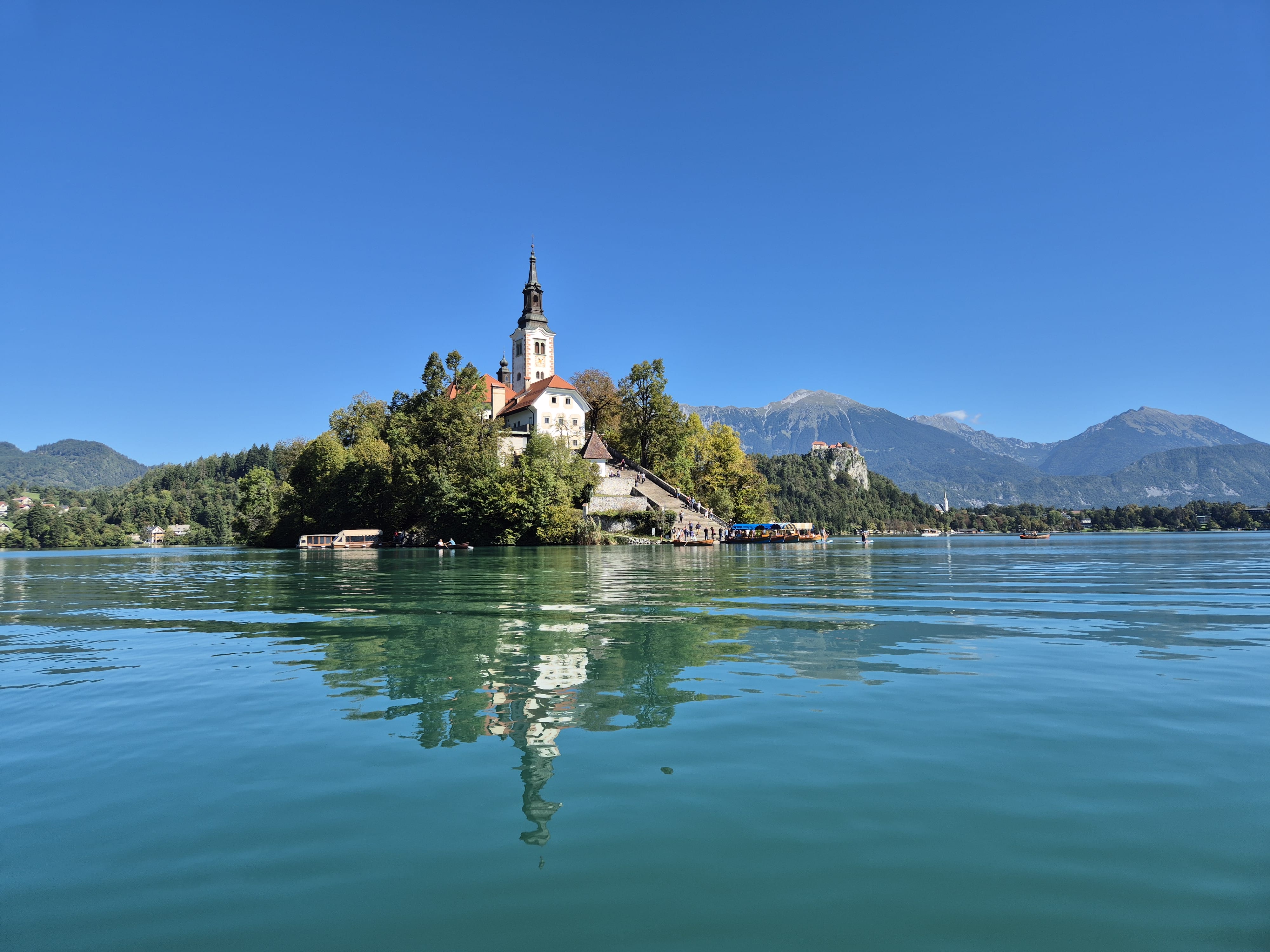 Auf einem traditionellen Pletna-Boot werden wir von einem Schiffer zur idyllischen Bleder Insel gerudert. Der Blick über den funkelnden Bleder See und die eindrucksvolle Bergkulisse ist unvergesslich.  Am Mittag darf die Spezialität der Region nicht fehlen: die Bleder Cremeschnitte.