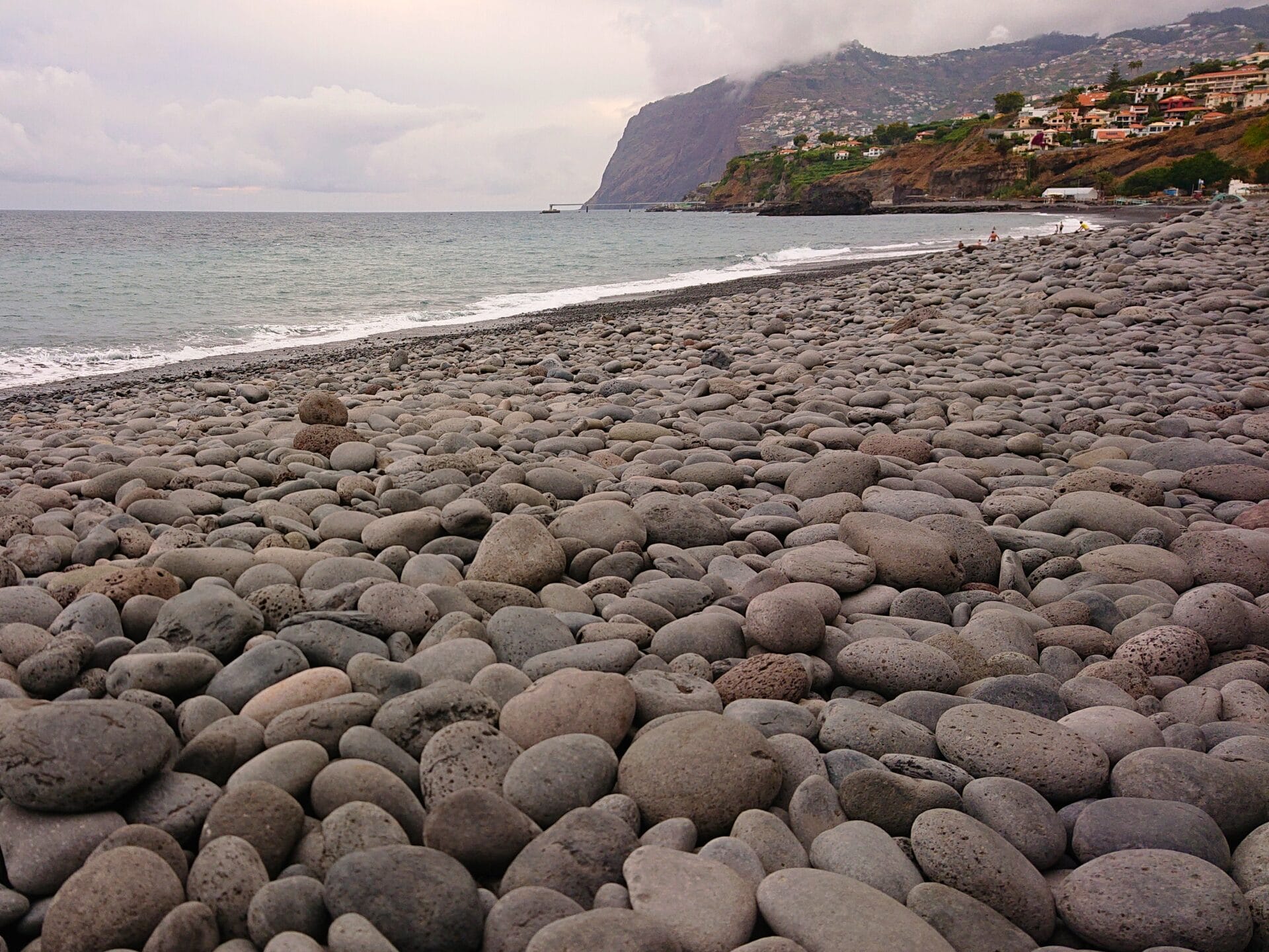 Natürliche Sandstrände sind auf Madeira dünn gesät, Kiesstrände findet man hingegen zuhauf. Auf den ausgedehntesten davon, die rund 2 km langen Praia Formosa bei Funchal, blickte ich direkt von meinem Hotelzimmer aus und konnte dem entspannenden Geräusch der in der Brandung rollenden Kieselsteine lauschen.