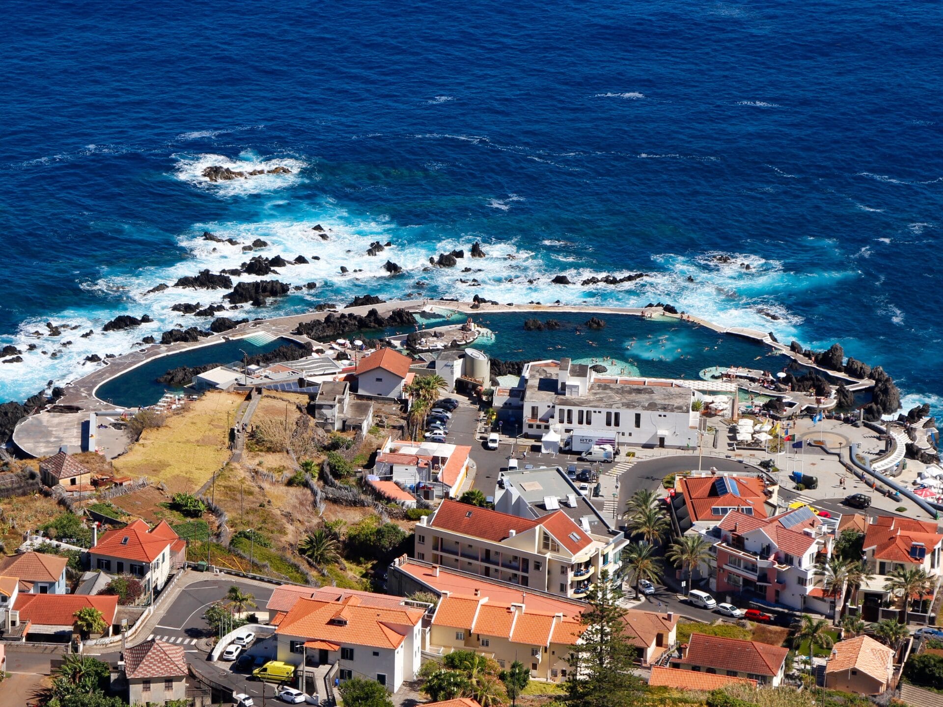 Mancherorts bauten die Madeirer Schutzwälle zwischen die Felsen und liessen eine idyllische Badelandschaft mit Lavapools entstehen. Eine der grössten Anlagen befindet sich an der Nordküste in Porto Moniz, wo auch wir eine erfrischende Abkühlung im Meer genossen.