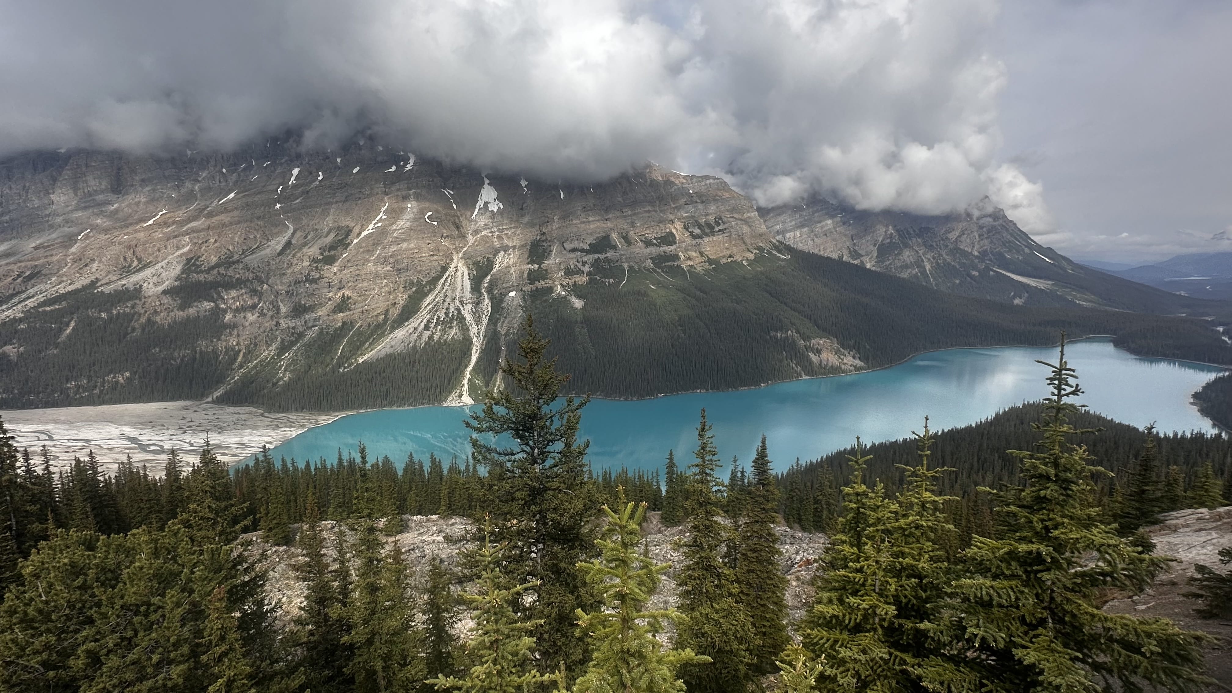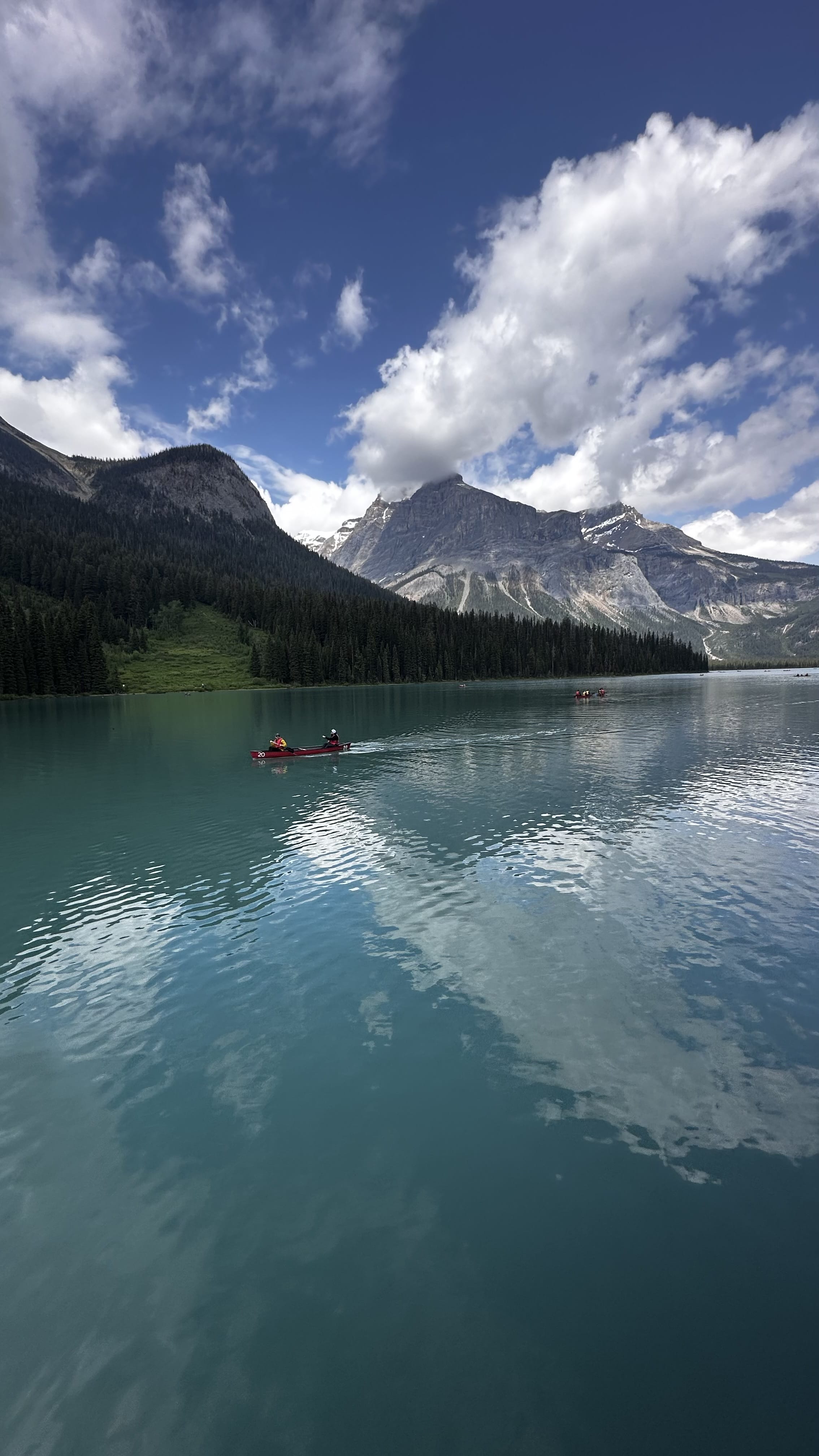 Am nächsten Tag erwarten uns endlich wieder ein paar Sonnenstrahlen, rechtzeitig um die einmalige Landschaft mit ihren zahlreichen türkisfarbenen Seen entlang des Icefield Parkways zu entdecken. Unser erster Stopp ist der Peyto Lake Aussichtspunkt, welcher uns einen tollen Blick auf den See und die Berge ermöglicht. Weiter erwarten uns der Bow Lake, der berühmte Lake Louise und der Emerald Lake, bevor unsere Reise weiter in Richtung Revelstoke führt. Revelstoke, ebenfalls ein Städtchen, dass in der Zeit des Eisenbahnbaus entstand, ist für die riesigen Zedern bekannt, die hier wachsen.