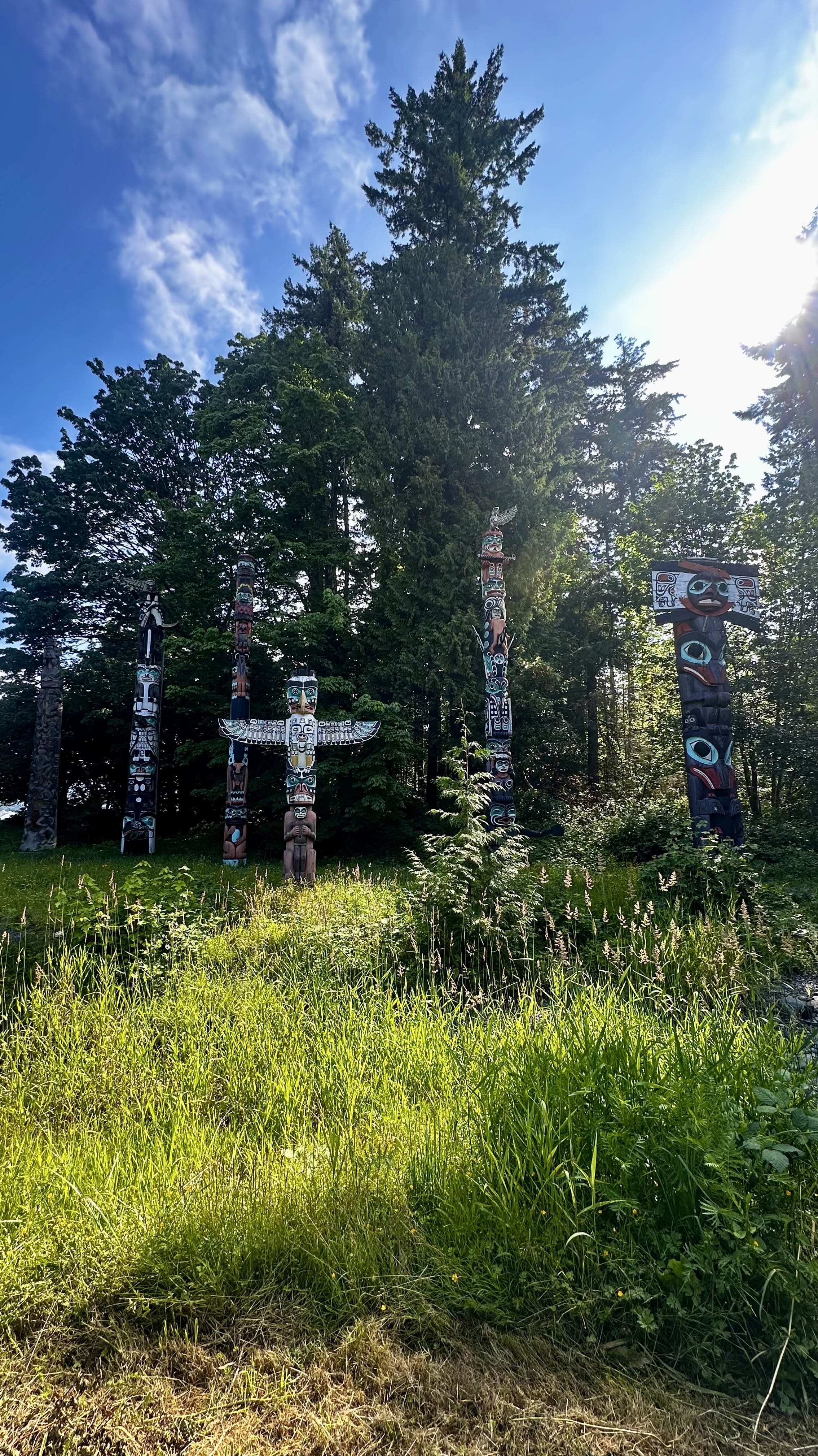 Am nächsten Morgen lernen wir die Stadt bei einer spannenden Stadtführung dann so richtig kennen. Auch hier ist das Erbe der First Nations anzutreffen. So gibt es im Stanley Park, der grünen Lunge Vancouvers, ein paar riesige, wunderschön geschnitzte Totempfähle zu bestaunen, oder an der Englisch Bay eine grosse Inukshuk-Skulptur, welche das Maskottchen der Olympischen Spiele 2010 war und als ein spirituelles Zeichen der Freude und des Willkommens bei den First Nations gilt.